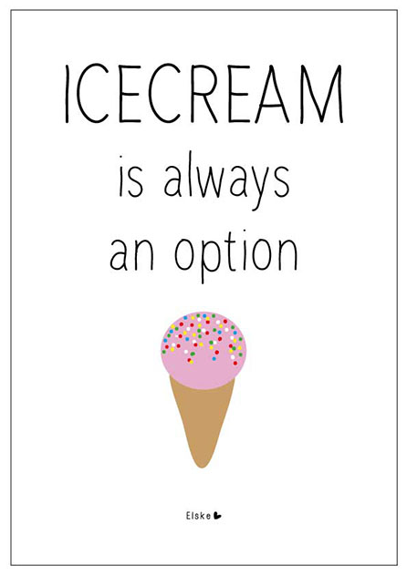 Dit zomerweer schreeuwt natuurlijk om ijsjes, dus die kochten we. Met discokorrels! De volgende quote schoot me te binnen tijdens het ritje terug op de fiets. Ik zag hem van de week al eens voorbij komen op de blog van Wimke. Ik maakte er een ontwerp van.