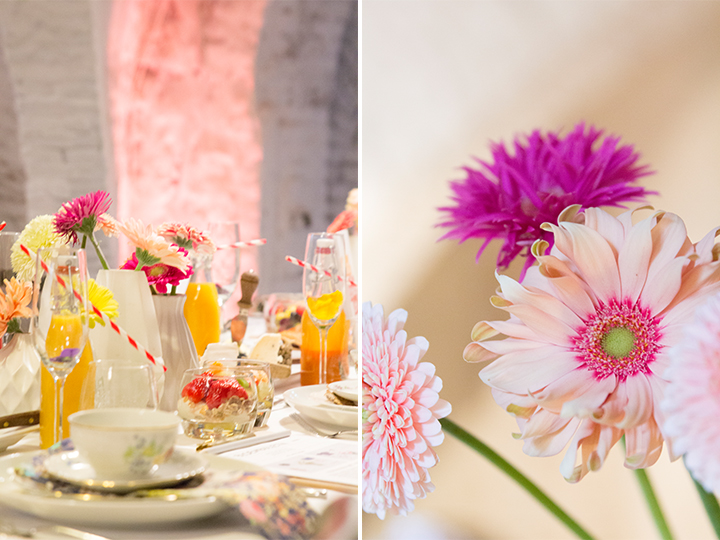 Afgelopen vrijdagochtend vertrok vroeg richting Amsterdam. Het verkeer zat mee, het reizen met het openbaar vervoer verliep vlekkeloos en daar stond ik: een half uur te vroeg in hartje Amsterdam. Na een kort rondje Vondelpark belde ik aan bij de Vondelkerk, waar het kantoor van organisator The Gardeners gevestigd is, en samen met de andere genodigde bloggers vertrokken we richting de kelder van dit prachtige pand. Daar stond alles klaar voor een ontbijtworkshop: rijk gedekte tafels en heel veel gerbera’s. Aan tafel en aan de slag!