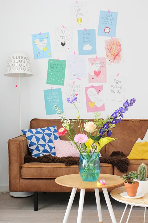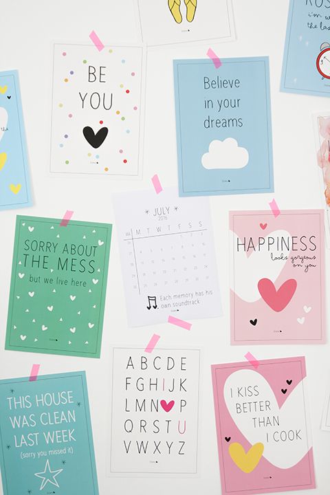 Deze zomermaand juli begint een beetje treurig, met veel regen en zonder korte broek. Om de fleur erin te houden houd ik mezelf voor dat we het mooie weer nog tegoed hebben en maak ik het in huis maar gezellig. Ik hing de printable kalender van juli aan de muur samen met de posters uit m’n shop.